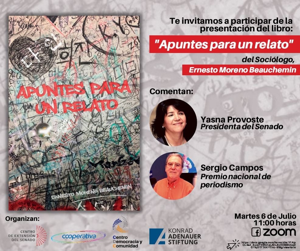 Lanzamiento del libro: APUNTES PARA UN RELATO, del Sociólogo y Director de CDC Ernesto Moreno Beauchemin, con la participación de la Presidenta del Senado Yasna Provoste y el Premio Nacional de Periodismo Sergio Campos.